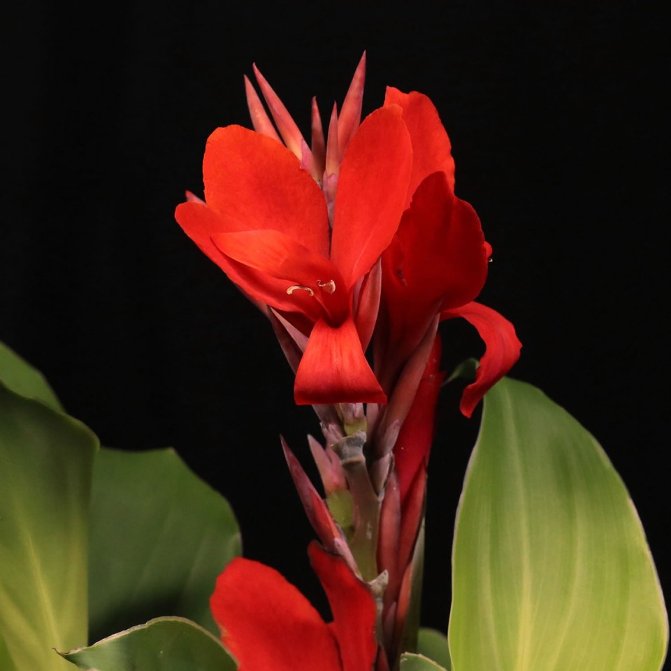 Mit ihren großen, breiten, grünen Blättern und orange-roten Blüten verleiht der Terrasse oder dem Garten eine tropische Ausstrahlung. Bleibt kompaktwüchsig ist im DNA gespeichert.