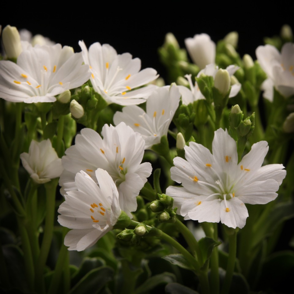Die Lewisia-Gattung, die nach ihrem Entdecker Meriwether Lewis (1774-1838) benannt wurde, umfasst ca. 20 Arten kleiner Stauden mit langen Pfahlwurzeln, ledrigen Blättern und sternförmigen Blüten. Alle Arten stammen aus den Rocky Mountains. Lewisia ist ein echter Überlebenskünstler. Man sagt, dass ein Botaniker, der sich mit 5 Jahren zuvor getrockneten Exemplaren beschäftigte, bemerkte, dass eines der Pflänzchen zu wachsen versuchte. Er setzte es in die Erde, wo es sich prächtig erholte.