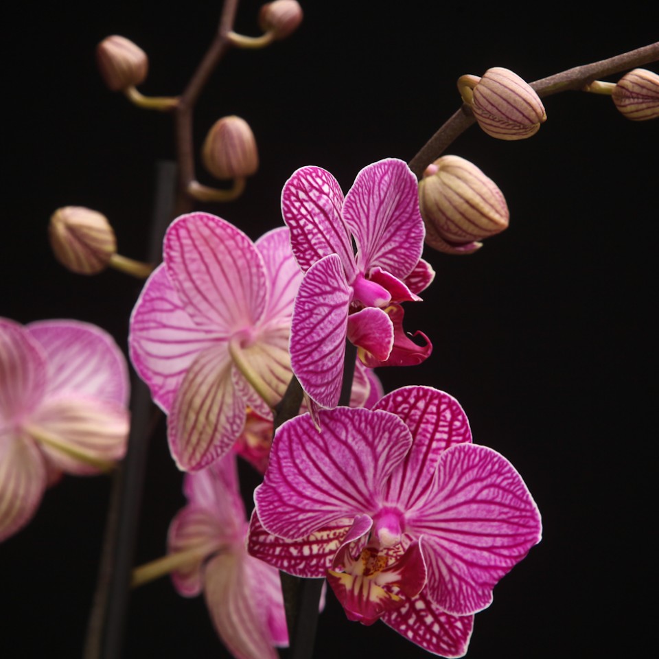 Die Phalaenopsis “Happy Minho” ist lange haltbar. Mit einer eigenartigen Blütenform und dunkler Blütenlippe mit lila-weiß geaderten Blüten, ist diese Phalaenopsis “HAPPY MINHO” ein “Fashion-Statement” in jedem Raum.